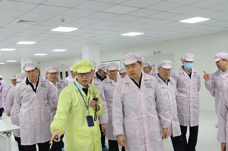 在倪斌先生的带领及介绍下,马晓晖、王纲、孙贤龙、杨建新、夏文星等市四套班子的领导们对公司车规级产线有了一定的了解。