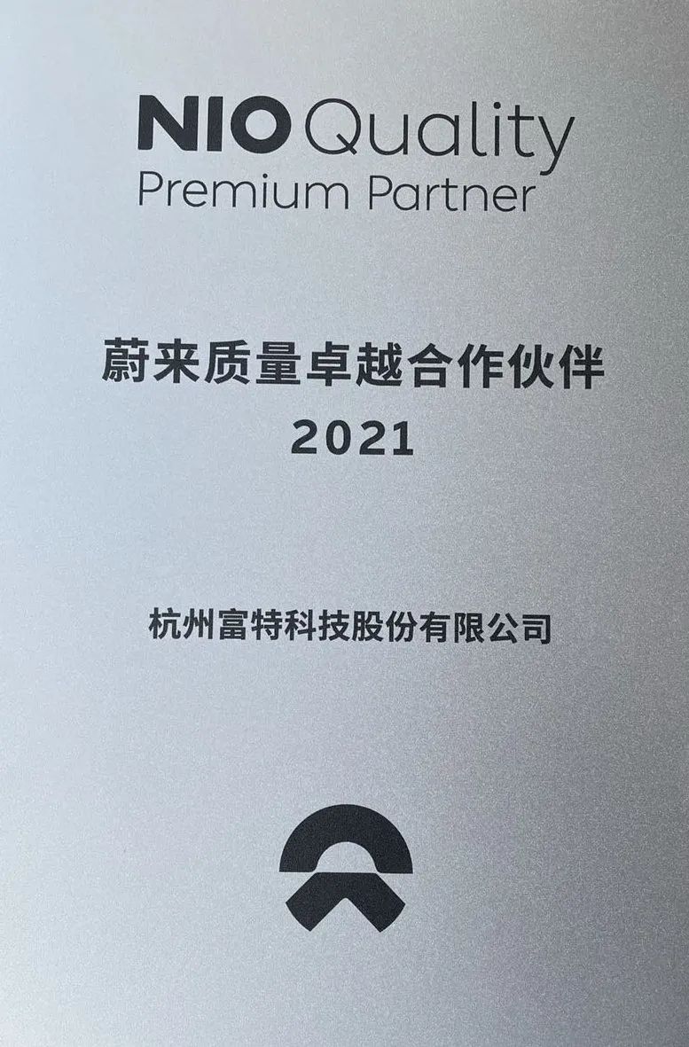 大会现场,蔚来汽车执行副总裁沈峰先生,亲自为富特科技颁发了NIO Quality Premium Partner(NQPP蔚来质量卓越合作伙伴奖项),表达了对富特科技产品的巨大信任和肯定。